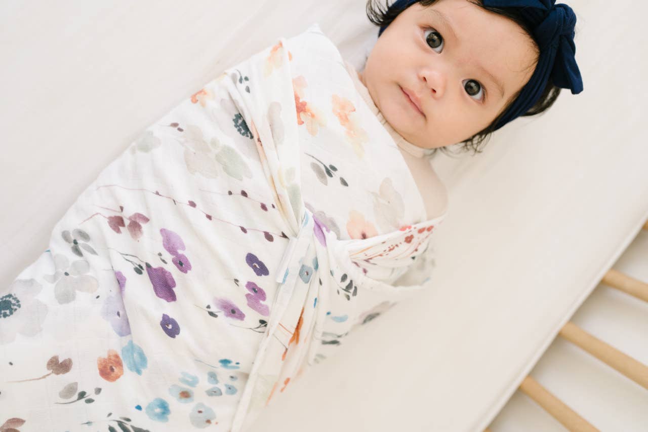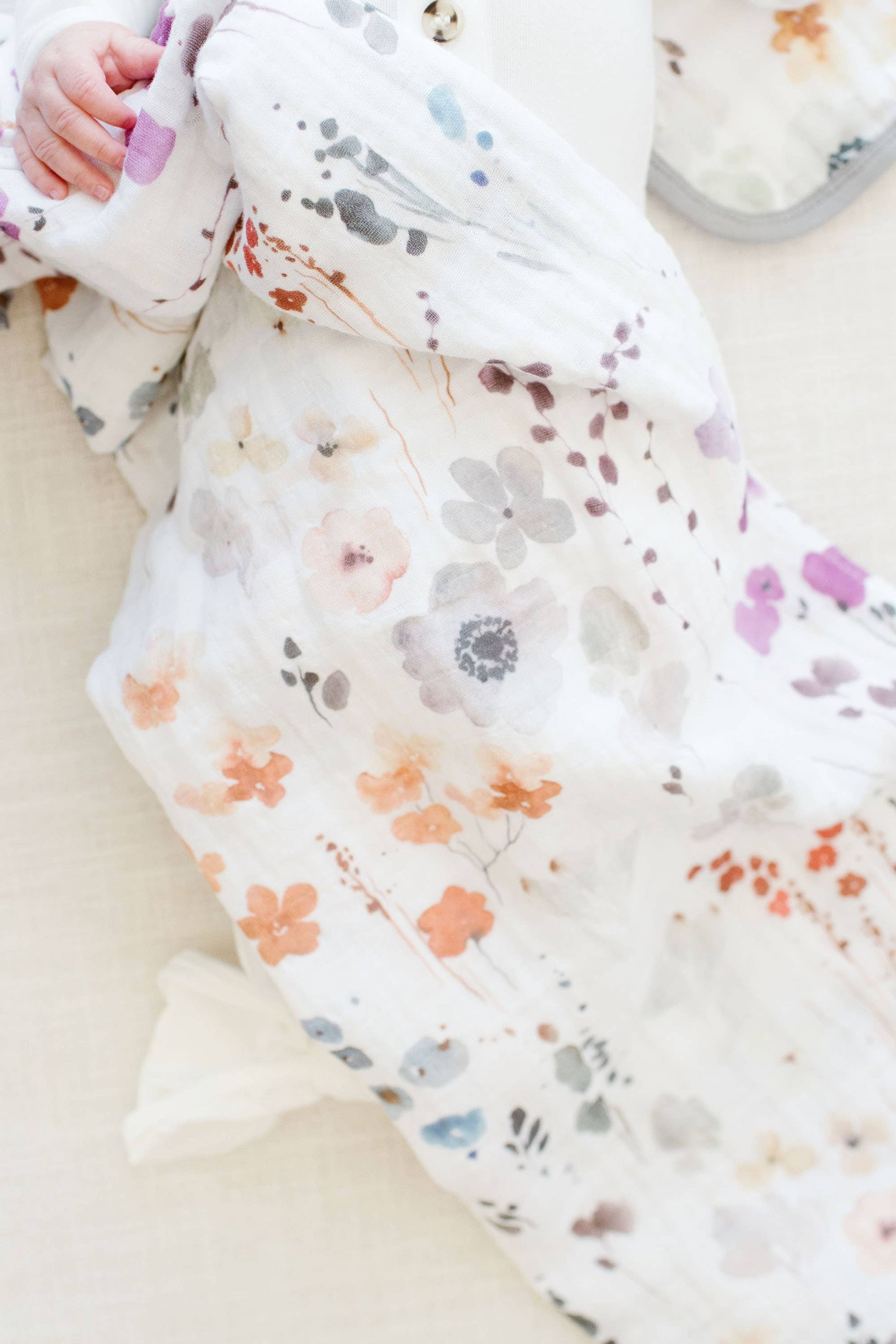 The Violet Collection features delicate watercolor flowers in soft shades of blue, violet, and orange on ultra-soft organic fabric. Designed for sweet snuggles, this floral collection brings a touch of whimsy and elegance, perfect for adding charm to any baby’s nursery. SUPER SOFT: Organic two-layer interwoven organic muslin gauze. Our swaddles are breathable yet perfectly snug🌿 PERFECT for swaddling, receiving blanket, and as a play mat for tummy time❤ SIZE: Extra large 48” x 48”, grows with baby well into toddler years. VERSATILE: Endless mixing and matching with our organic gowns + headbands! BEAUTIFUL GIFT: All Fawn & Foster products arrive in gorgeous, minimal packaging. Our mission of donating a portion of proceeds to helping foster children & other children in-need is stated on every package, so you feel confident in your purchase whether for yourself or as a gift. Thank you for your love and support of our mission to help these sweet children 🎁
